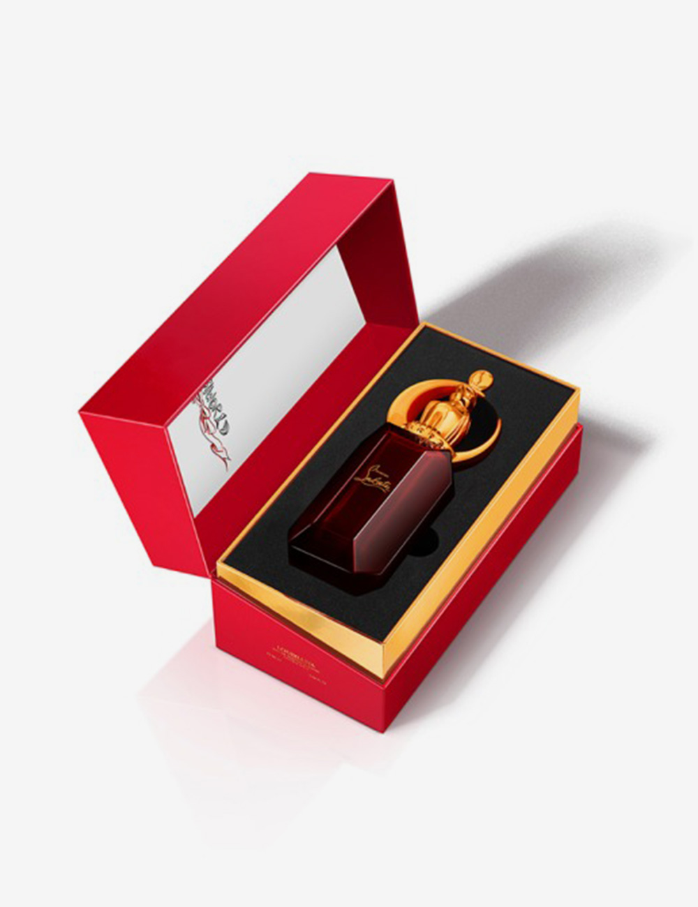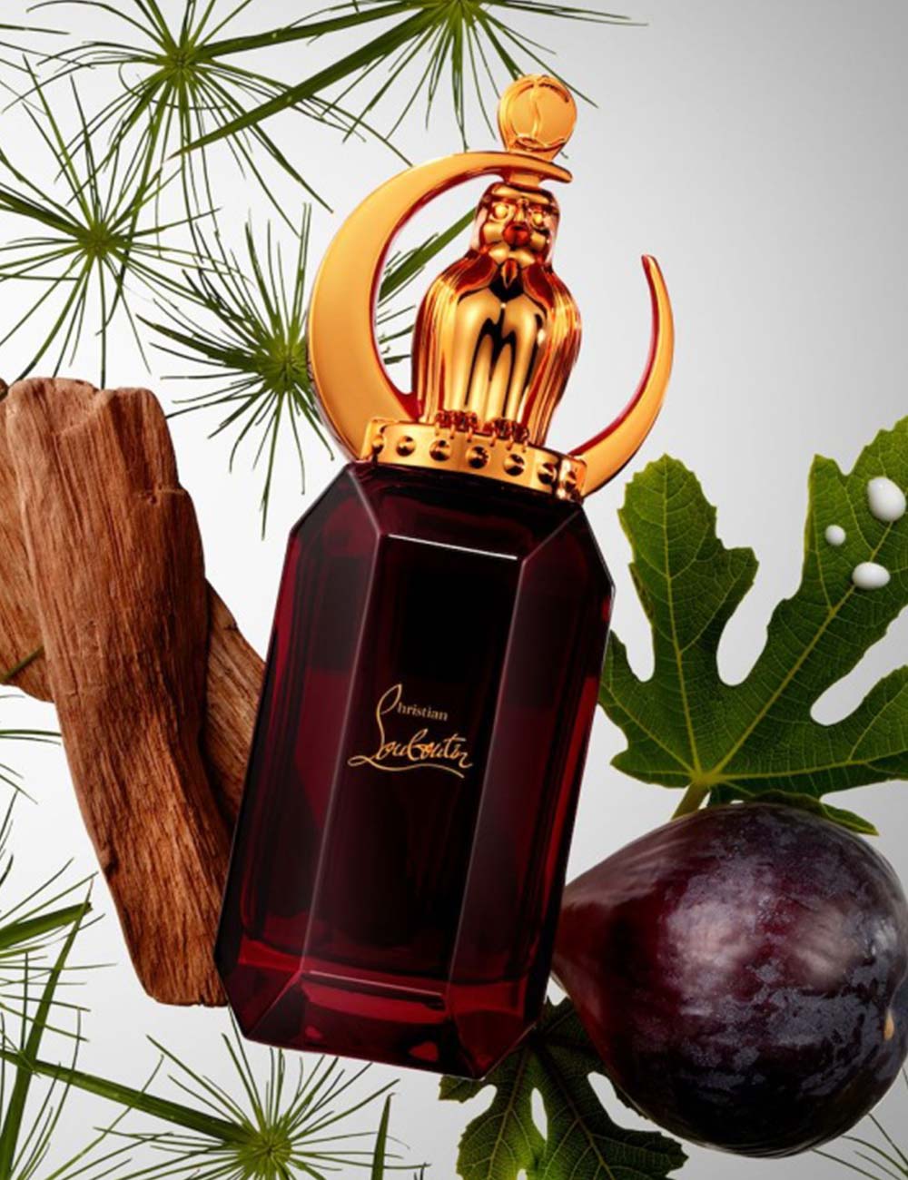 A Woody Oriental imagined by Christophe Raynaud. Christian Louboutin Loubiluna incarnates an elegant royal falcon standing on an impressive crescent moon. The back of this imperial falcon features the iconic red sole and is crowned with the house’s monogram.