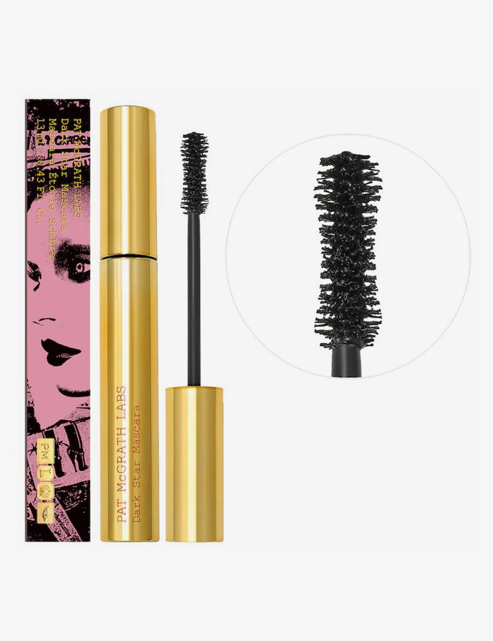 The luxurious formula layers on a precise, weightless coat of pitch-black colour, while the contoured brush features strategically-placed fibers of varying lengths that capture every lash at the root.