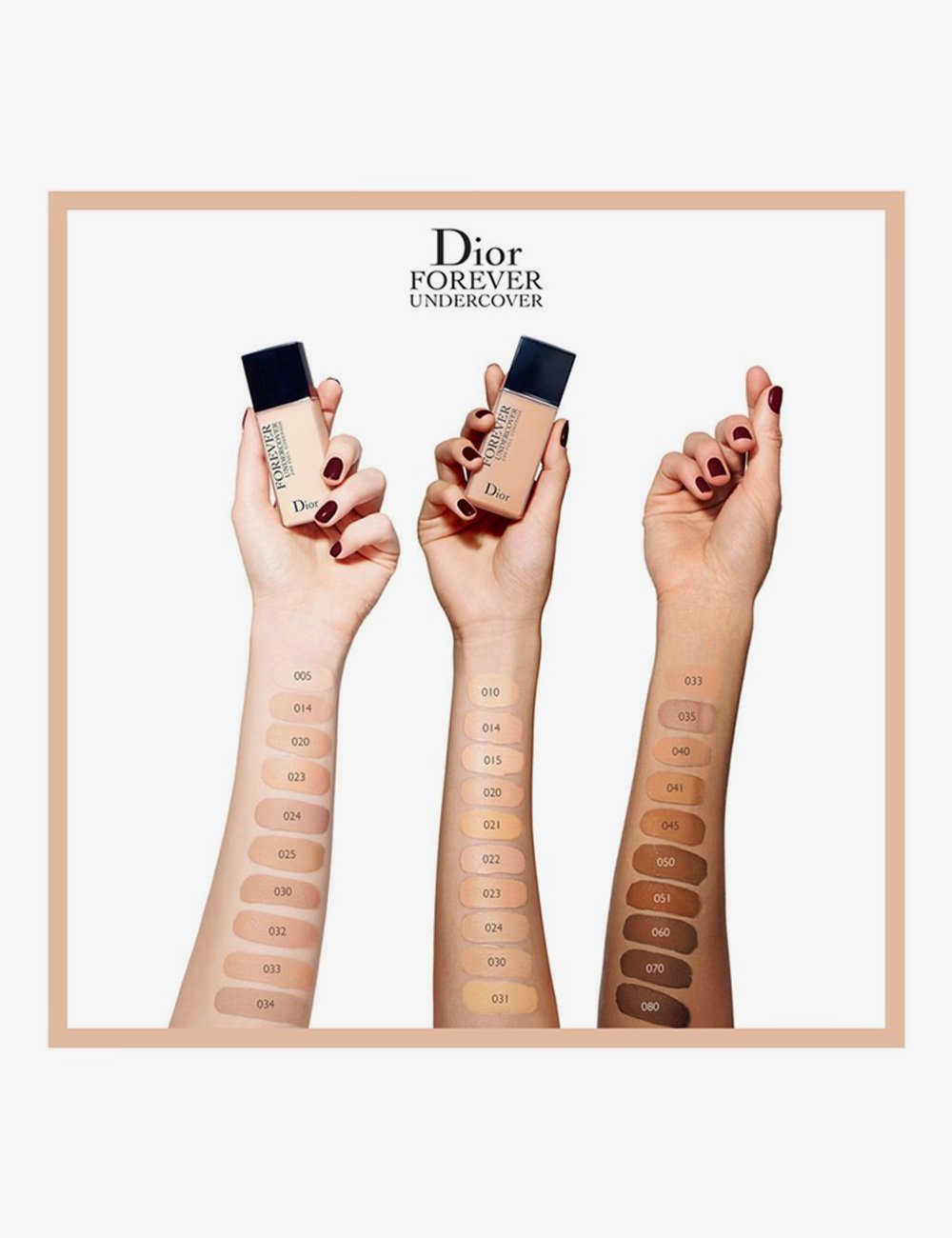 Dior Laboratories, experts in finish and wear, reinvent extreme correction with Diorskin Forever Undercover. This ultra-fluid, 24-hour* full coverage foundation combines maximum complexion control with a natural matte finish for a result that is “Kiss-Proof. Touch-Proof. Life-Proof. All Night. All Day.