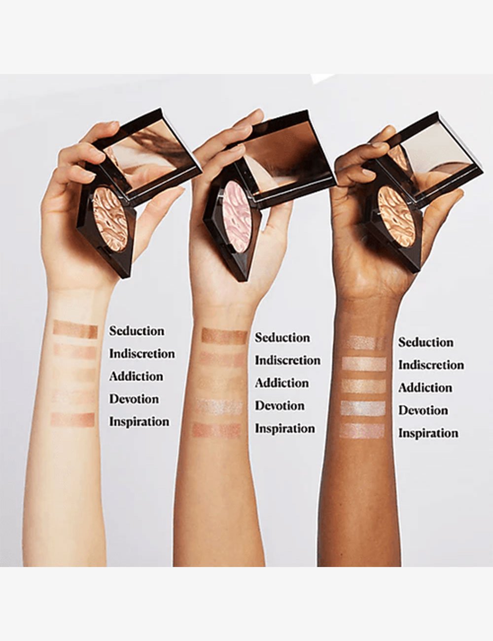 There’s a Face Illuminator right for every skin tone. Devotion and Indiscretion create a cooler toned highlight, while Addiction and Seduction are warmer.