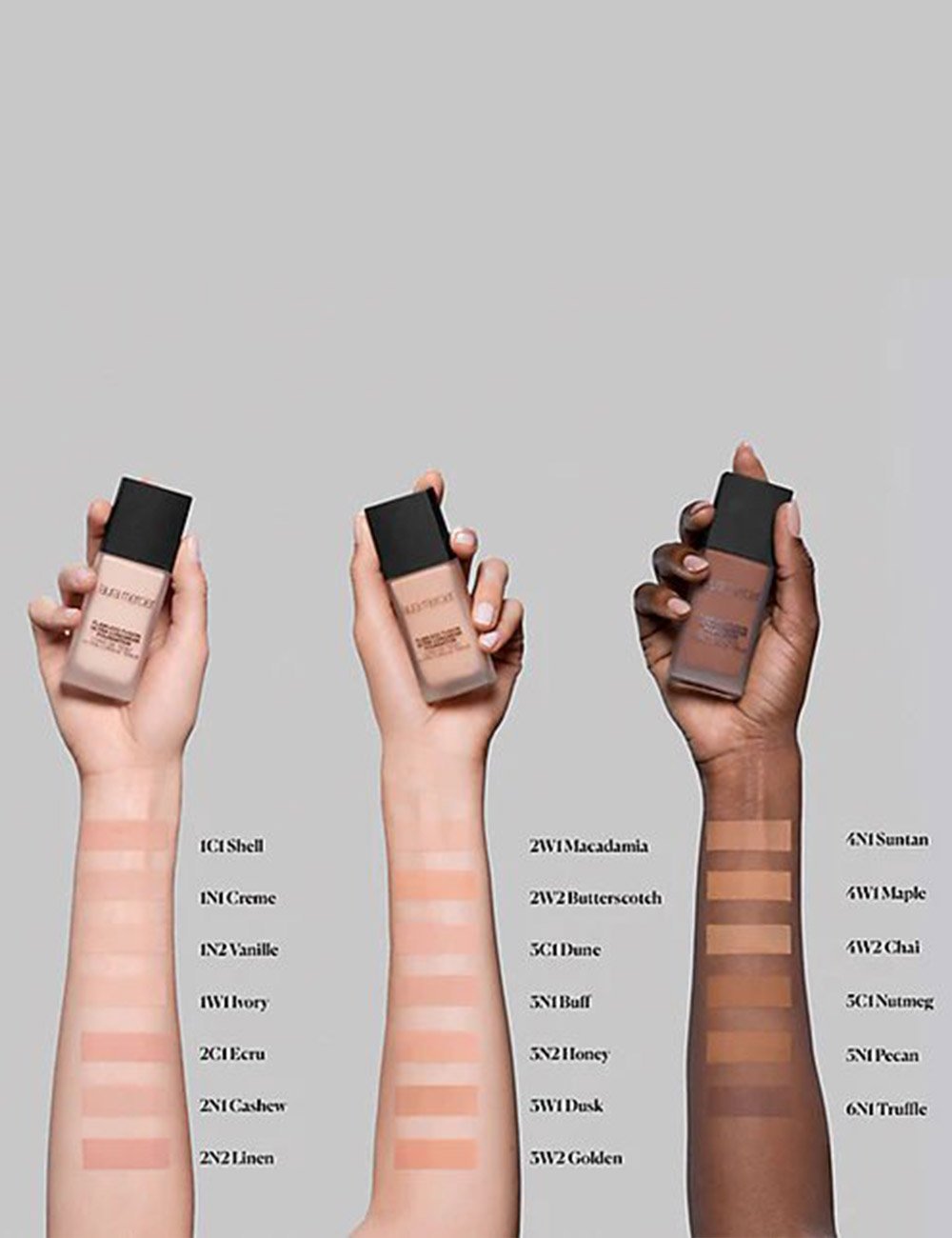 High-performance wear that’s sweat, humidity, water and transfer resistant. Colour stays true all day and won’t oxidize. Coated pigments glide on to create buildable medium to full colour that beautifully evens out skin tone and minimizes the look of pores and imperfections.