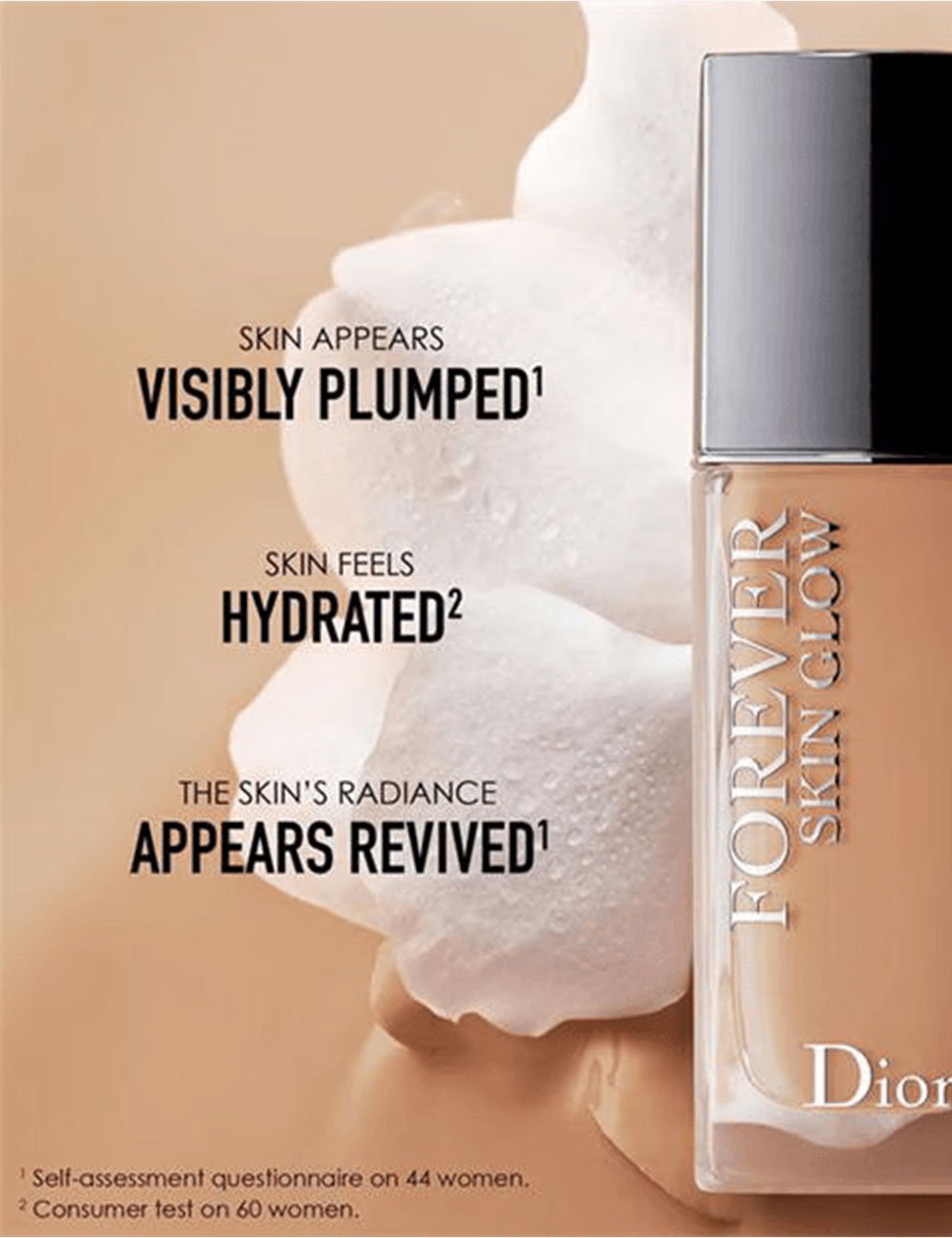 “Dior Forever Skin Glow is the radiant foundation by Dior that offers the complexion high perfection with 24h* wear, without touch-ups, and acts like a serum to reveal all of the skin’s natural luminosity. The complexion is more even and smoothed.