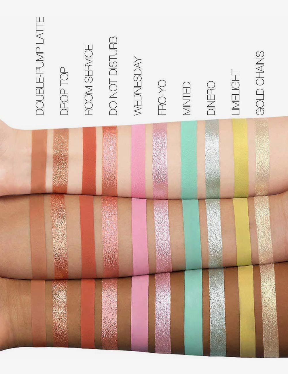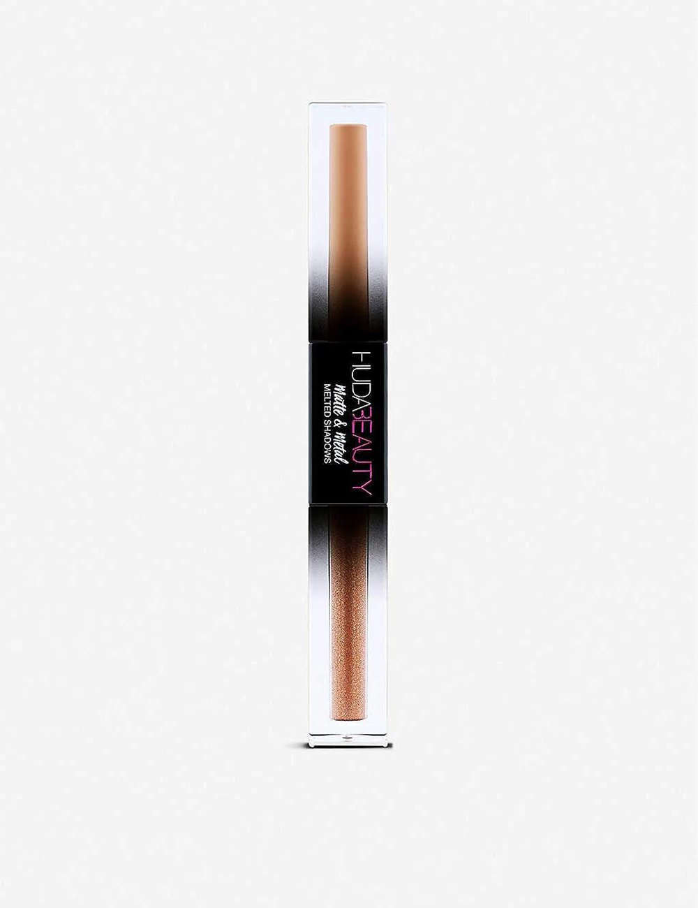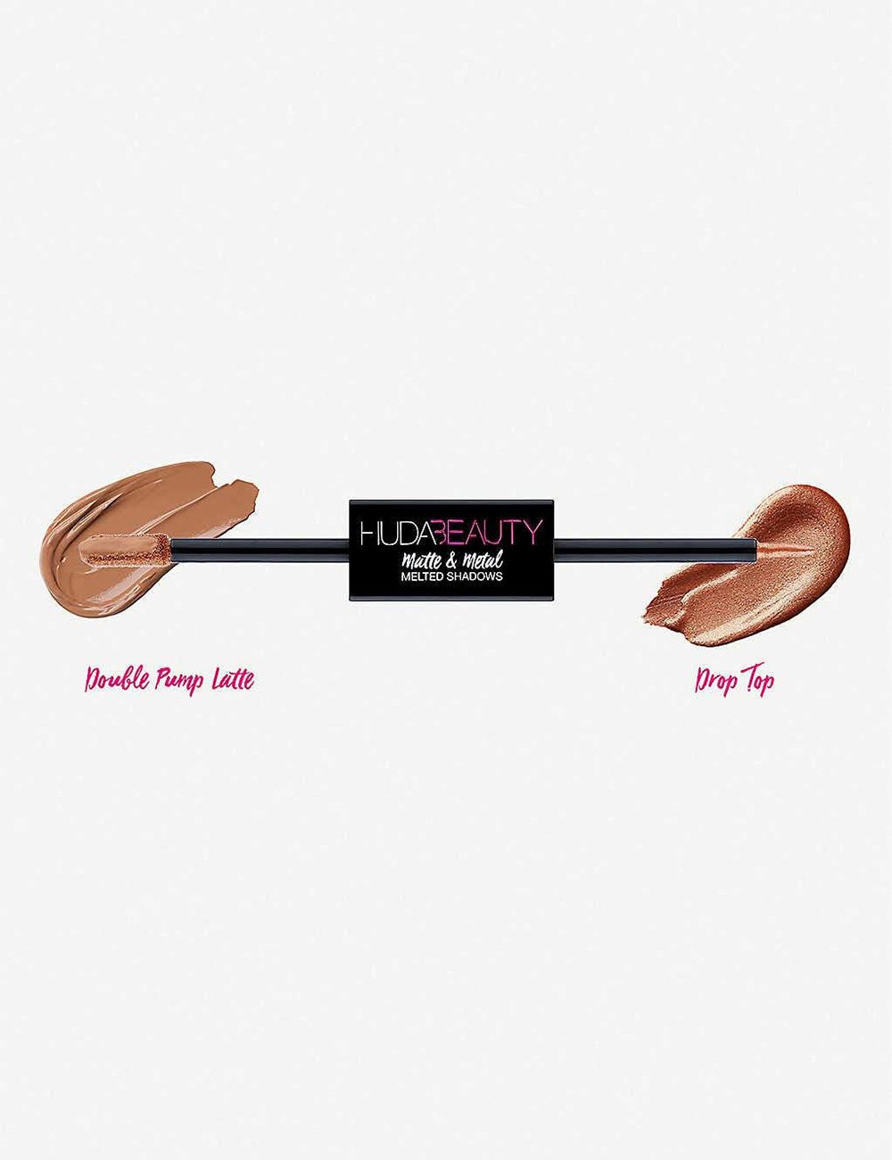 Double-Pump Latte & Drop TopA dual-ended liquid shadow combining a rich, velvety matte formula on one side, and an over-the-top sparkly on the other. Designed to be layered or used on their own, the dual-ended Matte & Metal shadows deliver rich pigmentation, intense shimmer, blendability and longevity – the shadows stay in place for up to 12 hours!