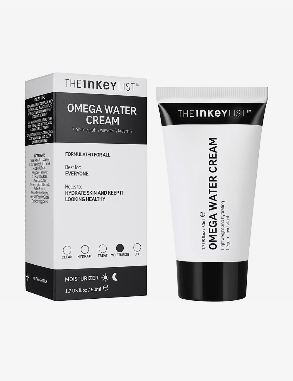 Instantly quench dry skin with The INKEY List Omega Water Cream, a lightweight, water-based gel moisturiser that delivers a surge of hydration without any oiliness. The daily facial moisturiser is suitable for all skin types, helping to nourish the natural skin barrier and lock in moisture.