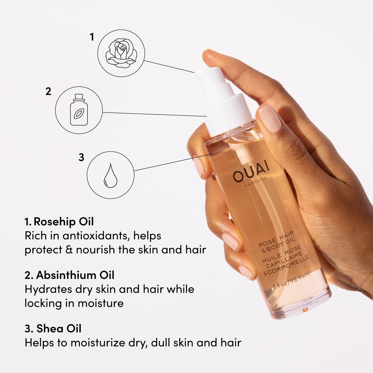 Finished with OUAI’s signature blend of Rose, Bergamot, Lychee and White Musk, the formula imparts an intoxicating scent that delicately fragrances the hair and body with long-lasting effect. Expect enviable radiance from head to toe.