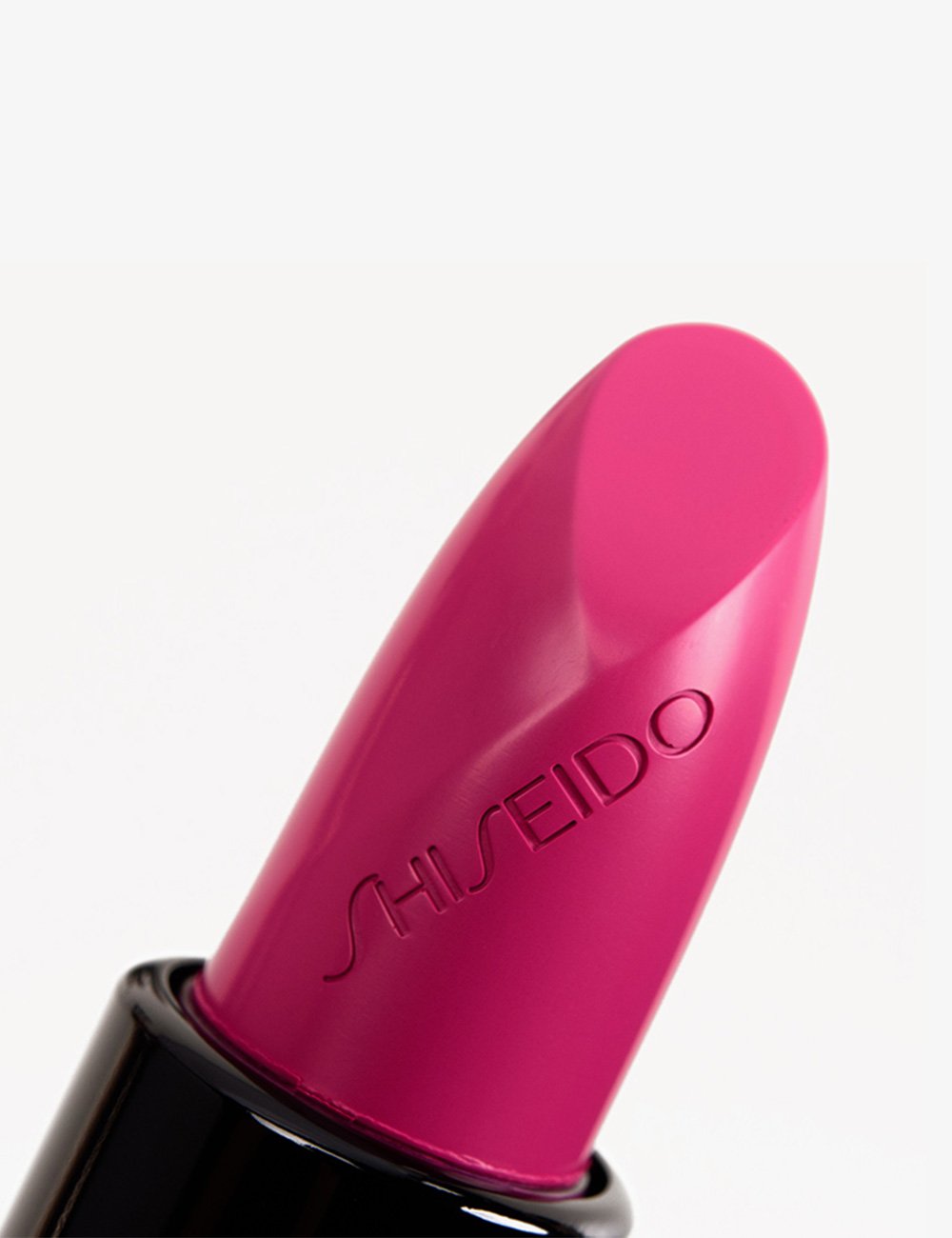 Shiseido Primrose Sun (RS419) Rouge Rouge Lipstick is a deep fuchsia pink with cool, blue undertones and a semi-matte satin finish. It had good color coverage in a single stroke